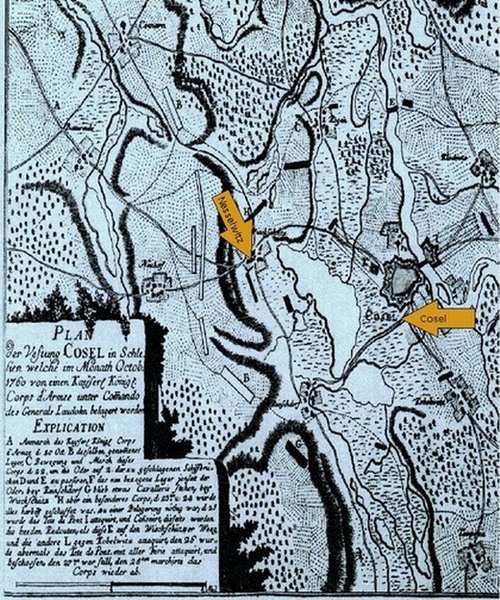 Im Oktober 1760 wurde unter Friedrich den Großen die Festung Cosel, die von Österreich besetzt war, belagert und eingenommen. Die Karte die aus dieser Zeit entstanden war zeigt den Aufmarsch der preußischen Truppen unter General Laudon der kaiserlichen, königlichen Armee. In Nesselwitz und Umgebung bezog ein teil der Truppen ihr Lager und mußte von den Einwohnern versorgt werden. Nach zwei Wochen Belagerung und anschließender Einnahme der Festung Cosel waren alle Wintervorräte der Einwohner von Nesselwitz aufgebraucht und ihr Vieh geschlachtet, so dass für den kommenden Winter die Hungersnot hereinbrach.