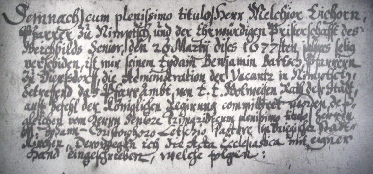 Aus dem Kirchenbuch 1677 zu Nimptsch